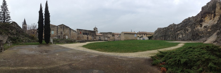 Le site du Rocher à Pierrelatte est surprenant. La déambulation dans la ville ne laisse pas forcément présager de sa morphologie, de son imposante force et de l’évidente nécessité d’en faire un espace d’expression culturelle.